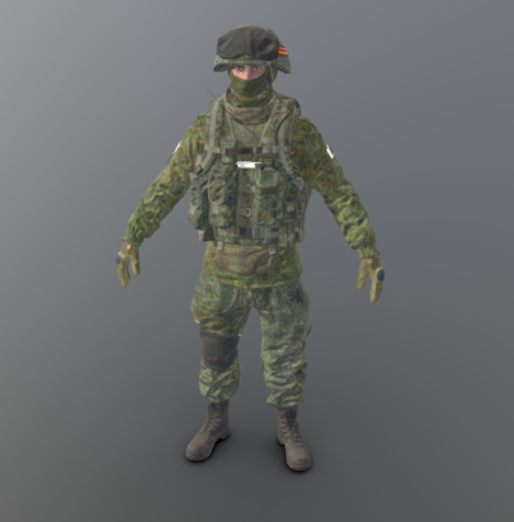 A high-poly, rigged 3D model of a modern Russian VDV paratrooper, inspired by the Ukraine War and the Battle of Bucha. This model represents a trooper from an invading army, featuring realistic military gear, ripped uniforms, and battle-worn textures. โ๏ธ
